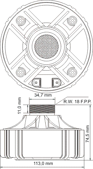 Potência RMS: 35W RMS Potência máx: 450W máx Bobina(s): BS 8 Ohms Peso: 2Kg Dados técnicos: